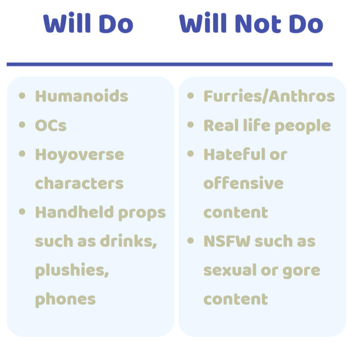 Offering two types of art commissions, one character per art only!